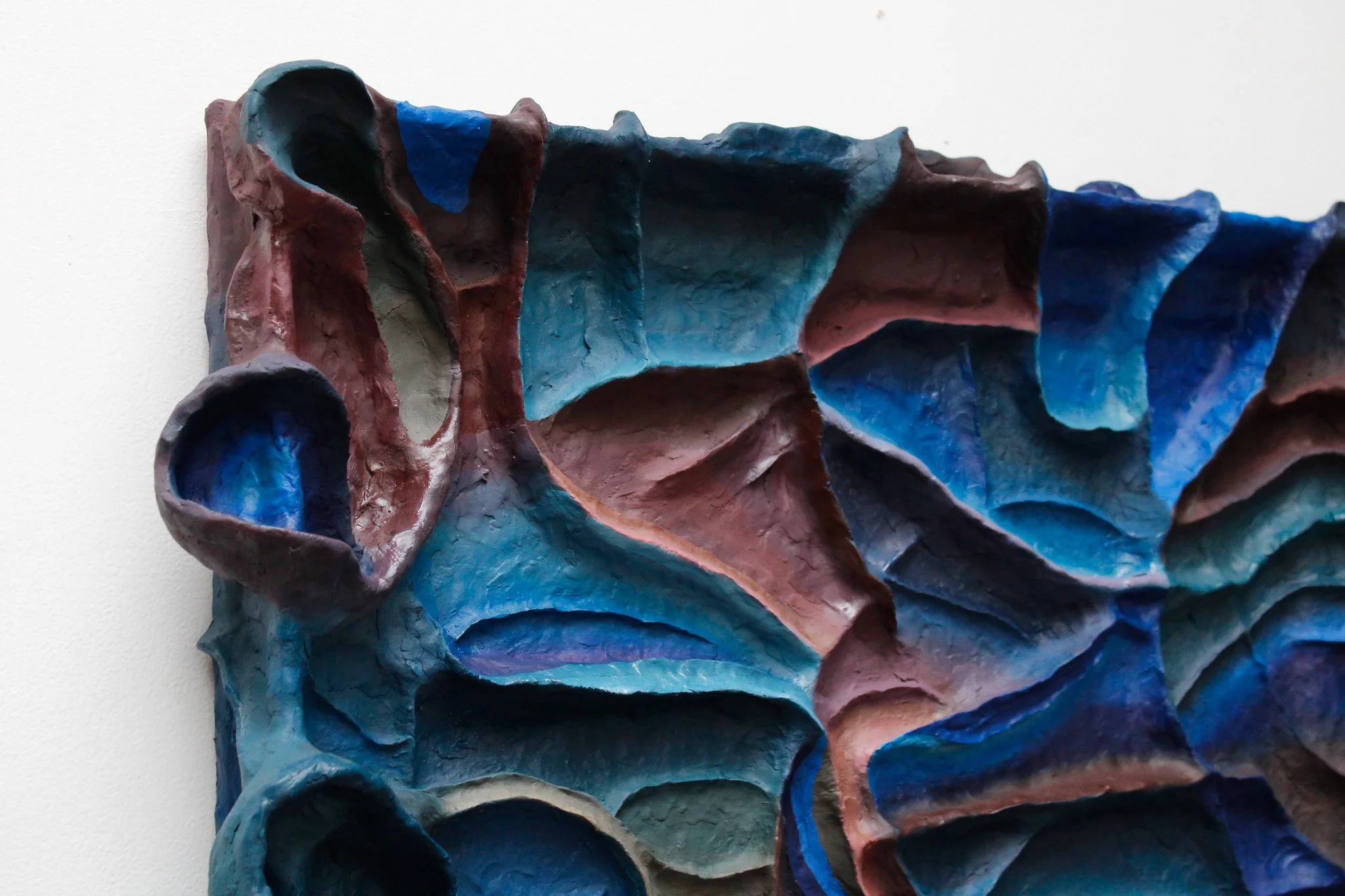 Detail showing the depth created as clay folds around the corner of the frame